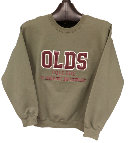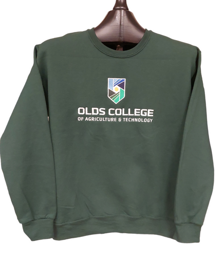 Crewneck Olds College Forest Green w/Full Front Embroidery